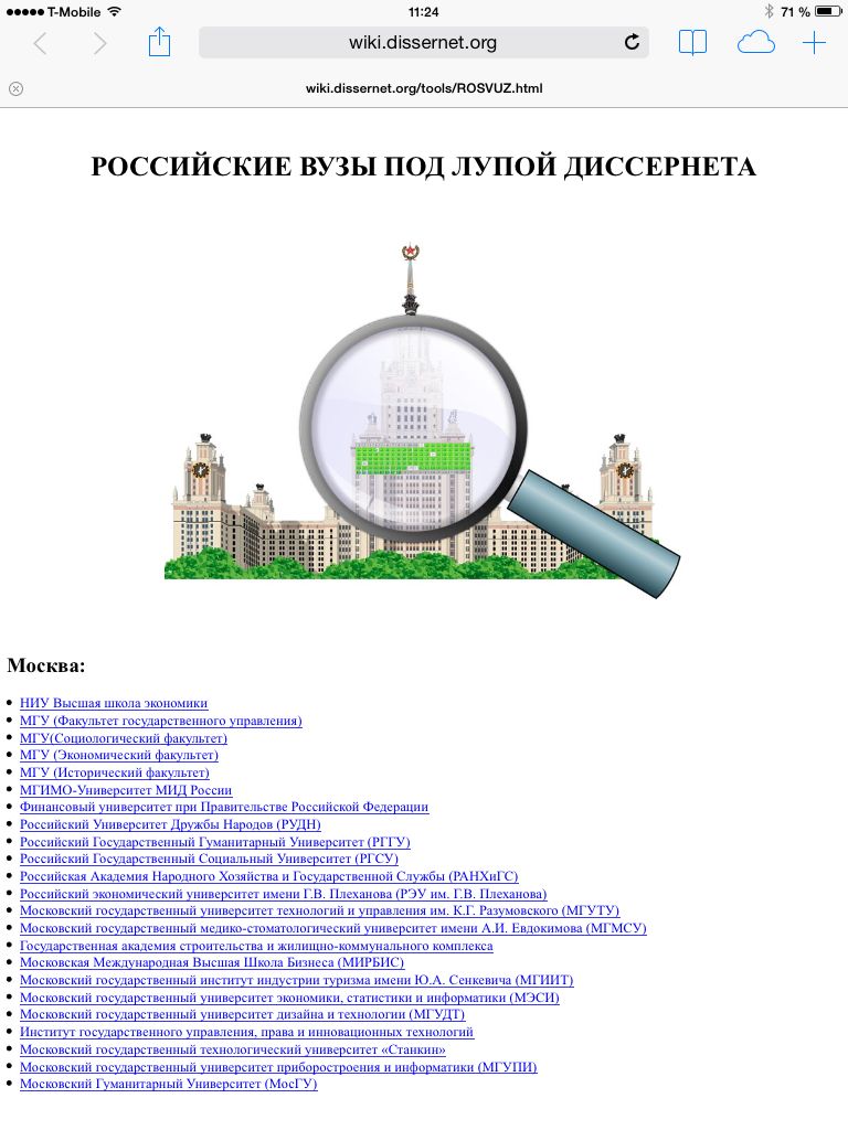 Путеводитель "Диссернета" по диссероделательным вузам страны