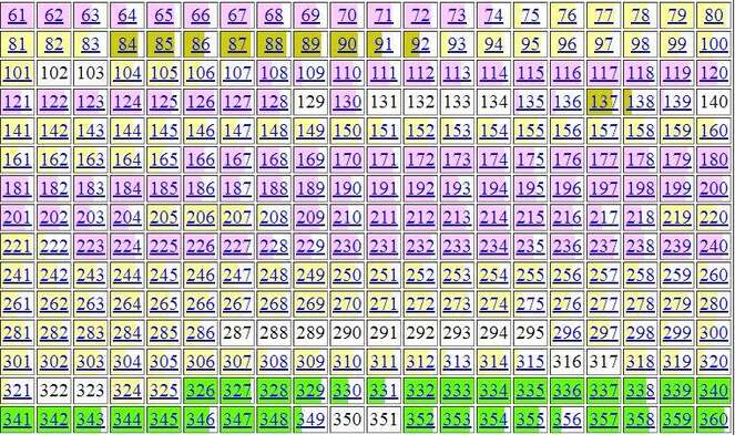 Прочими цветами обозначены страницы, на которых имеются заимствования из тех или иных источников, перечисленные в "легенде" под таблицей на странице сайта, содержащей соответствующую экспертизу и ее полные атрибуты.