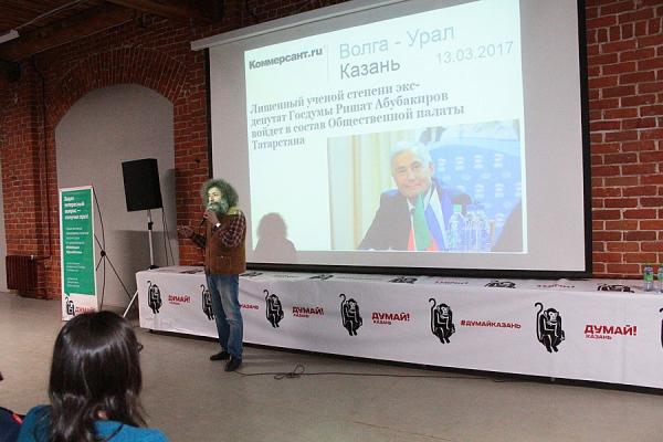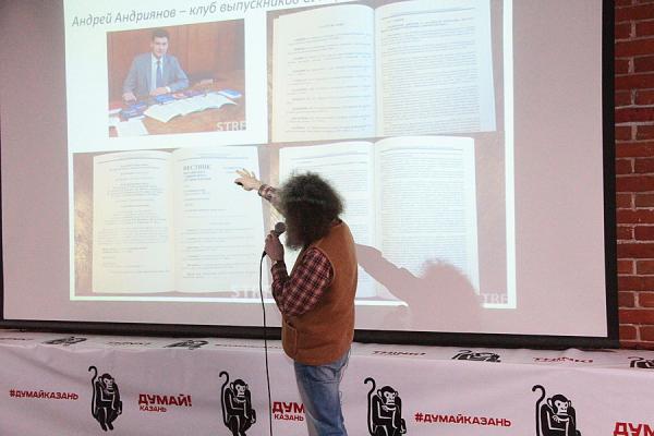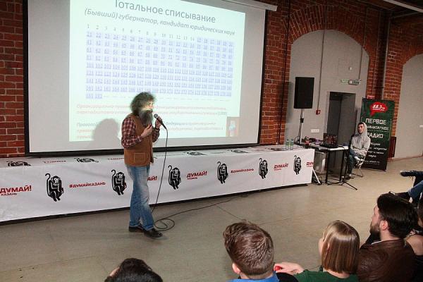 Все места в зале «Смены» заняты молодыми казанцами – в большинстве студентами из КФУ. Гельфанд выводит на экран ссылку на публикацию «Вечерней Казани» за 2011 год.